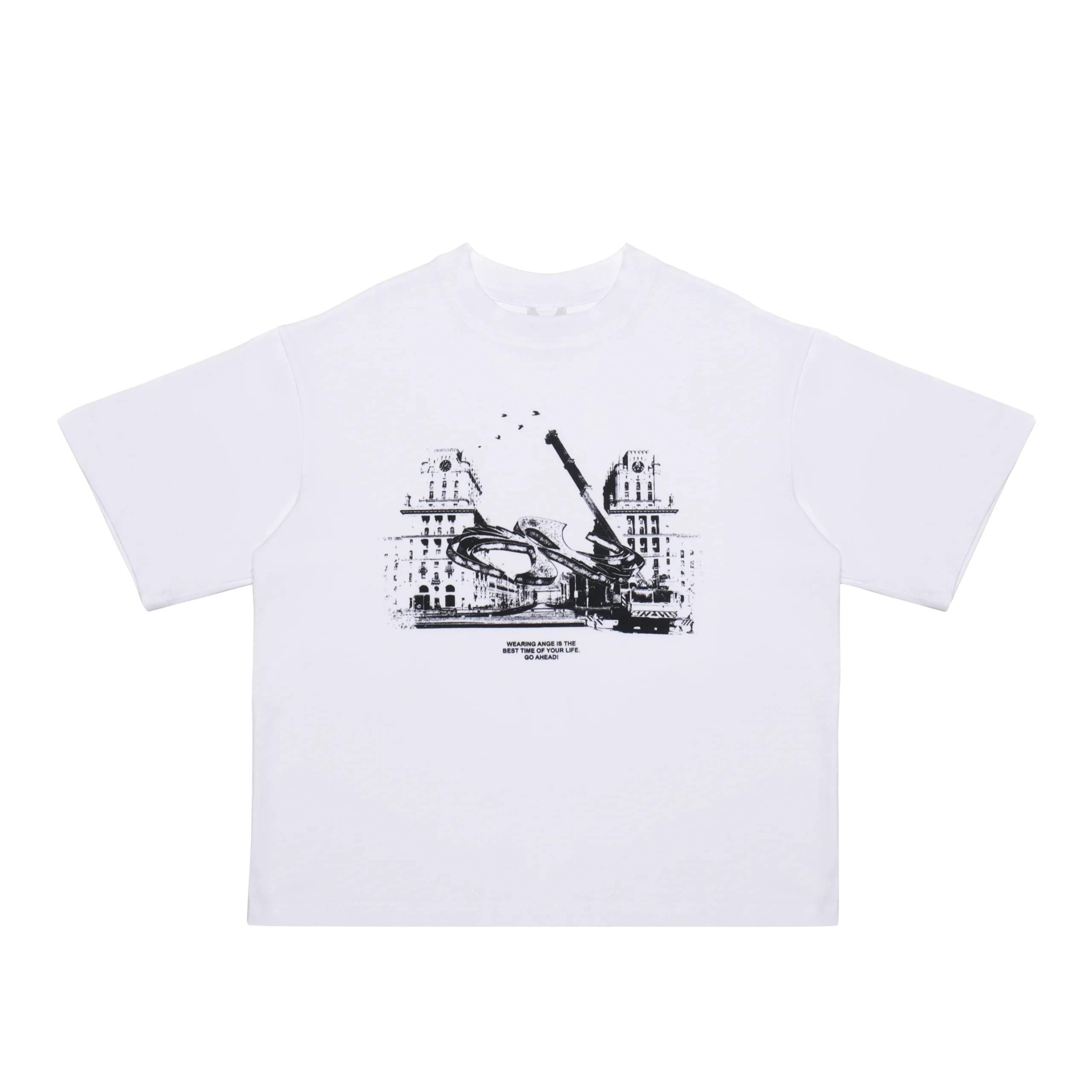 Центральный элемент — принт с изображением Минских ворот на вокзале. Он выполнен методом шелкографии, что гарантирует чёткость деталей и долговечность рисунка. Этот дизайн — не просто декоративный элемент, а символ возвращения, идентичности и связи с родиной.